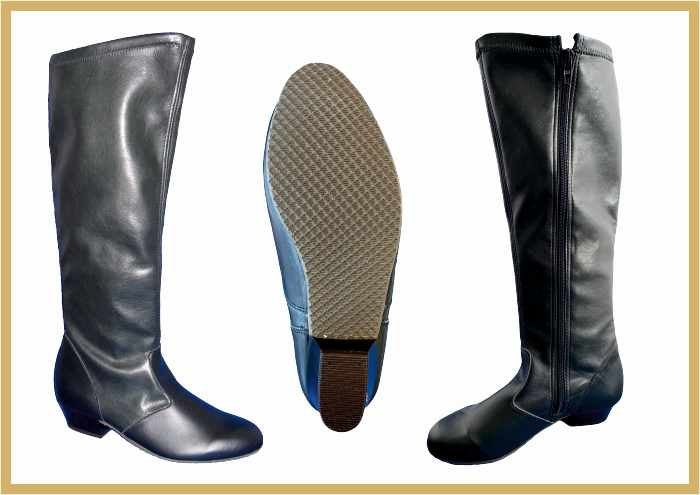 Tanzstiefel mit Reißverschluss und enger, elastischer Schaftröhre für optimale Paßform. Obermaterial Leder und Stretchsynthetik, Sohle Gummi, Farben: 1 schwarz, 2 weiß. Absatzhöhe 35 mm, Schafthöhe ca. 41 cm.